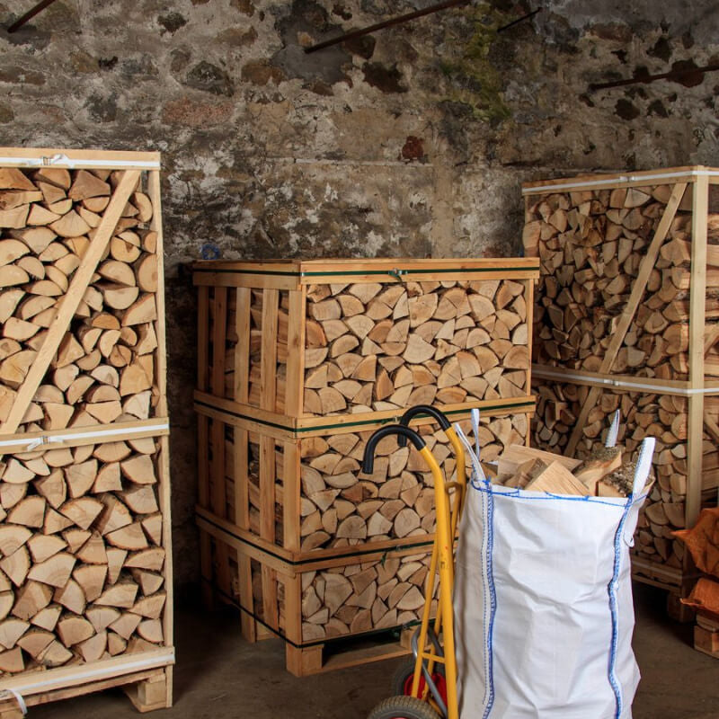 Order your kiln-dried firewood in narrow access bags, nets and crates