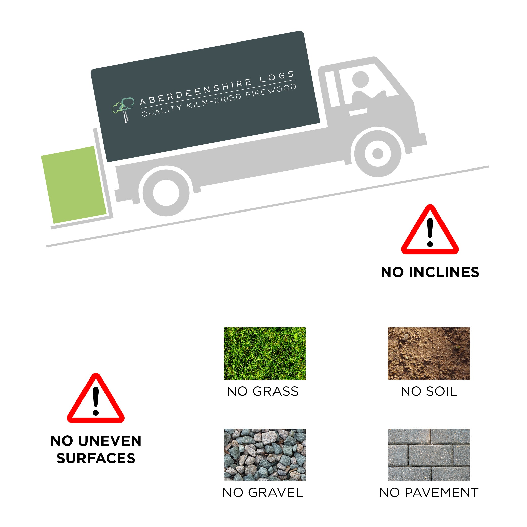 We’ll go the extra mile to place your logs exactly where you need them, but we can only do that if it’s safe to do so. Please leave a clear pathway/route that’s free of ice for our delivery driver and also ensure that the area where the logs are to be placed is clear and unobstructed.